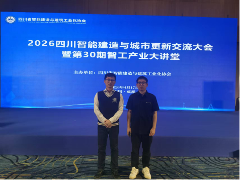 2026年4月17日,以“智能建造、城市更新、绿色低碳”为主题的2026四川智能建造与城市更新交流大会暨第三十期智工产业大讲堂在成都中国西部国际博览城隆重召开。本次大会作为2026中国(成都)建筑及装饰材料博览会的重要组成部分,汇聚了来自智能建造与城市更新领域的投资开发、总承包、设计院、生产制造、科研院所、高等院校及材料装备等单位的众多专家学者与行业代表。我校工程与材料学院教师葛承鑫、张宁川应邀参会,深入学习交流行业前沿动态,积极拓展校企合作渠道。