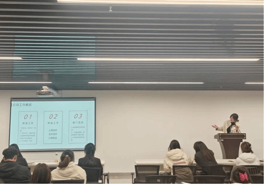 随后,各部门代表依次上台进行工作总结汇报。他们通过PPT展示的形式,详细介绍了过去一学期中部门的工作成果、工作中的不足与改进措施、工作计划以及对部门未来的展望。从学术科研到社会实践,从志愿服务到文化交流,各部门的工作成果丰富多彩,充分展示了团总支学生会成员的辛勤付出和丰硕成果。