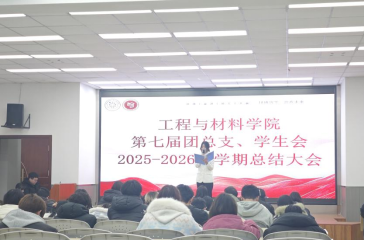 本次大会既是对过去一学期工作的全面检阅与深刻反思,更是站在新起点上的一次思想动员与行动部署。工程与材料学院团总支、学生会将继续紧紧围绕立德树人根本任务,深化思想引领,强化服务职能,繁荣校园文化,团结带领广大同学坚定理想信念、锤炼能力本领,为学院高质量发展和青年学生全面成长注入源源不断的青春动能,奋力开创团学工作新局面。