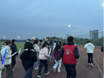 活动开始前,学院工作人员有序为到场同学分发荧光棒等亮光装备,五彩斑斓的荧光瞬间点亮校园夜色。在工作人员的带领下,全体参与者整齐列队,依次进行关节活动、动态拉伸、核心激活等热身训练,在这热烈欢快的氛围,大家舒展筋骨、调整状态,以饱满精神与充沛体能为即将开始的荧光夜跑做好充分准备。夜色渐浓,随着一声出发指令,全体参与者迈着轻快的步伐,围绕着操场正式开启荧光夜跑。大家手持荧光棒,井然有序地奔跑在跑道上,一圈又一圈,五彩荧光在夜色中连成流动的光带。同学们相互鼓励、结伴前行,在奔跑中释放压力、舒展身心,用脚步诠释青春活力,全程洋溢着轻松热烈、团结向上的美好氛围。