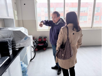 黄教授首先参观了我院东区教学实验中心,周大利院长就实验室面积、设备投入及即将开展的实验项目作了简要介绍,黄教授对“教学—科研—竞赛”三位一体的共享模式表示肯定。