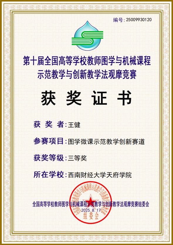 喜报丨西南财经大学天府学院工材教师在第十届全国高等学校教师图学与机械课程示范教学与创新...